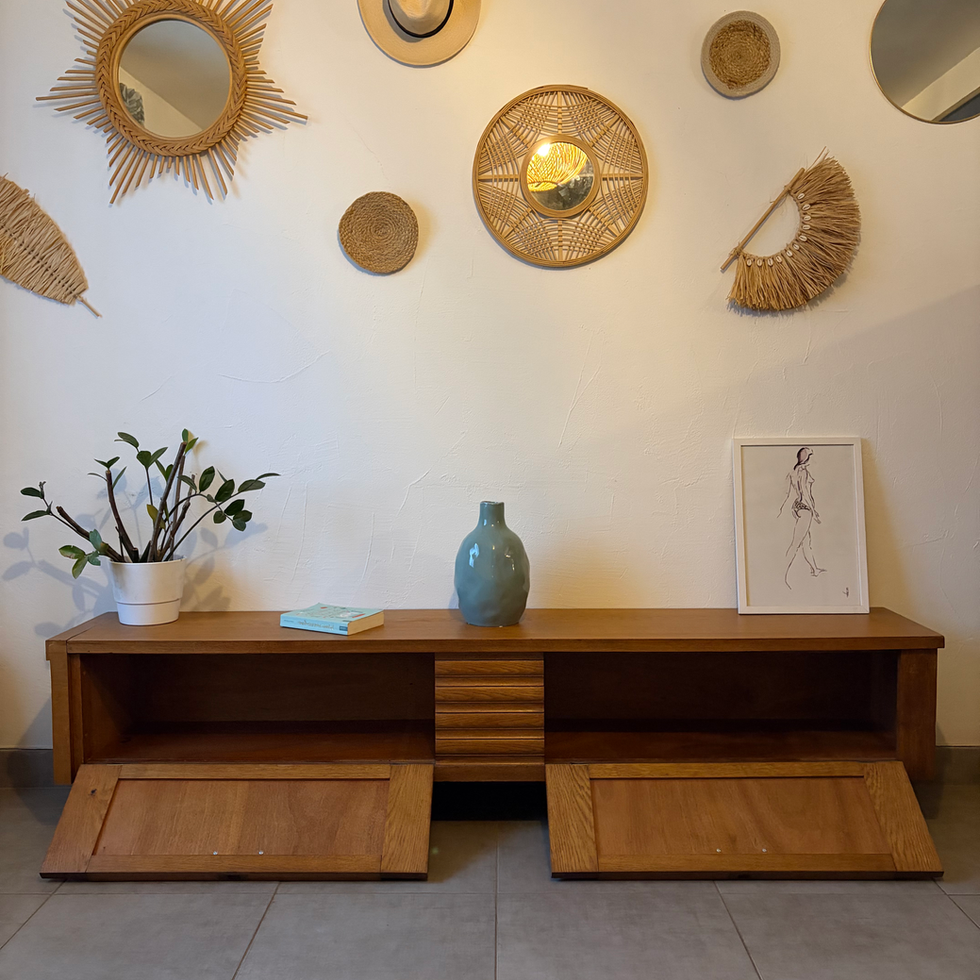 Magnifique enfilade basse vintage des années 60 en chêne massif.
