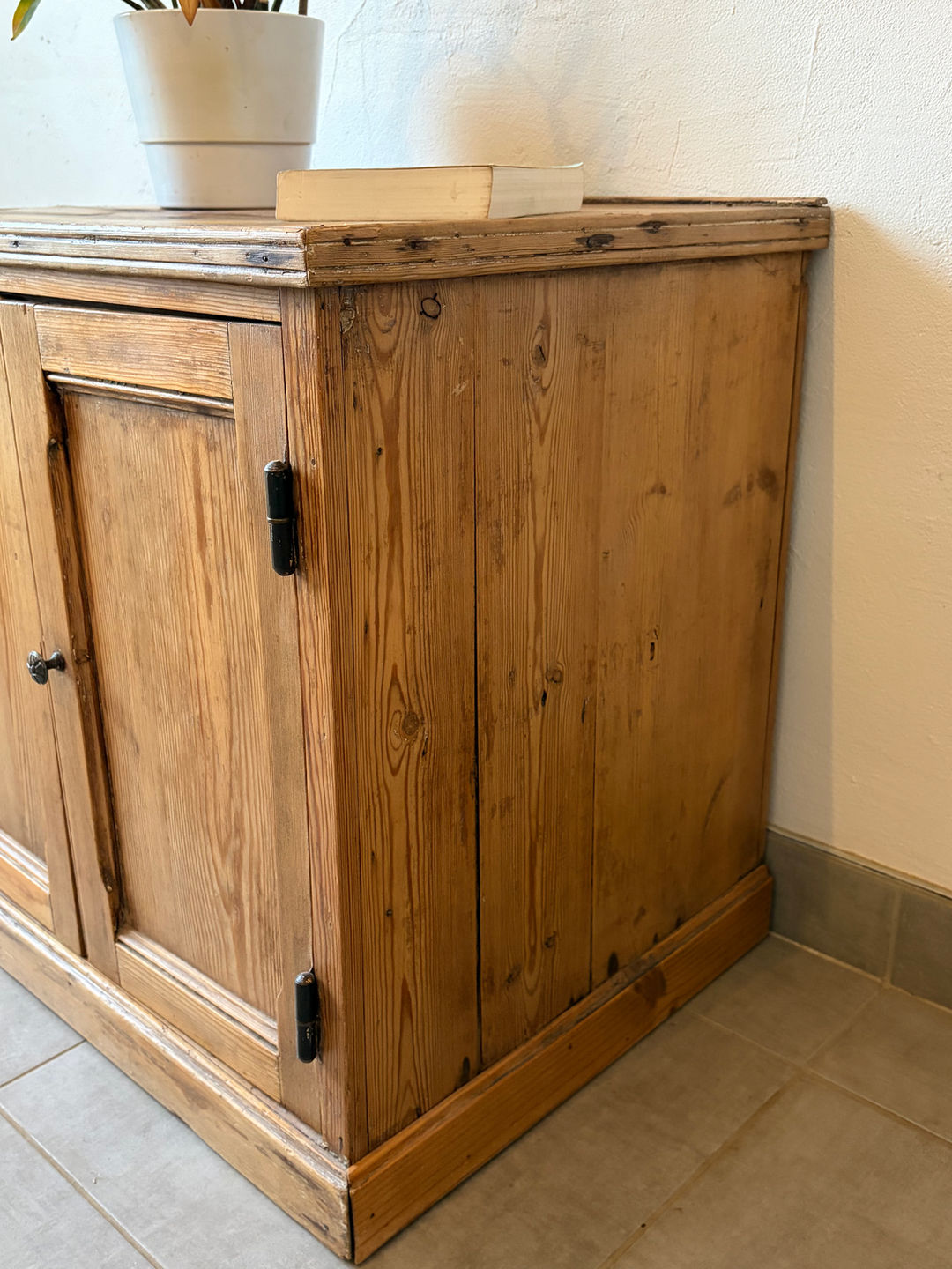 1 niche avec une tablette intérieure, trou au dos du meuble pour faire passer prises électriques , 1 bouton en laiton d’époque et d’origine