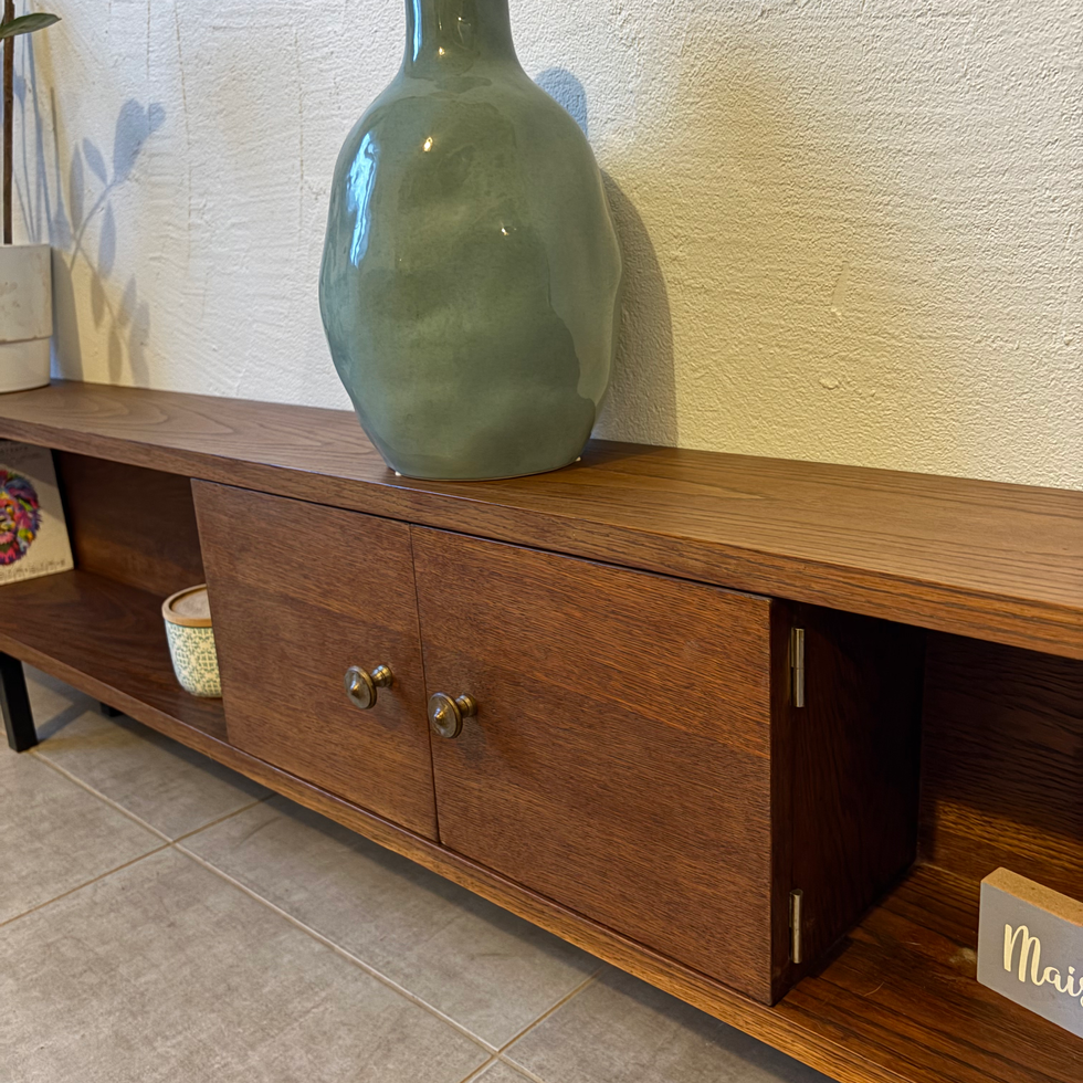 Magnifique enfilade basse vintage des années 60 en chêne foncé.